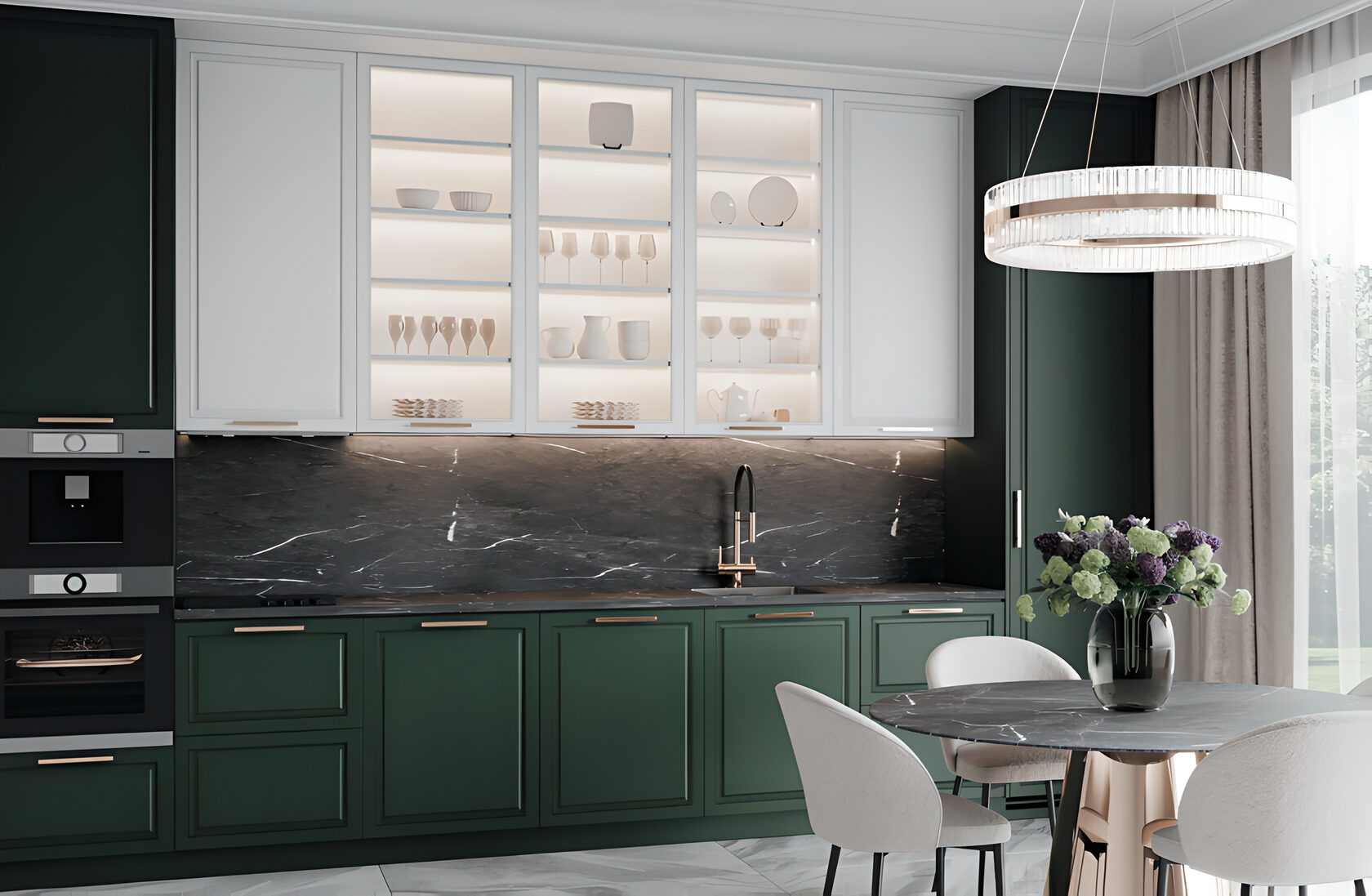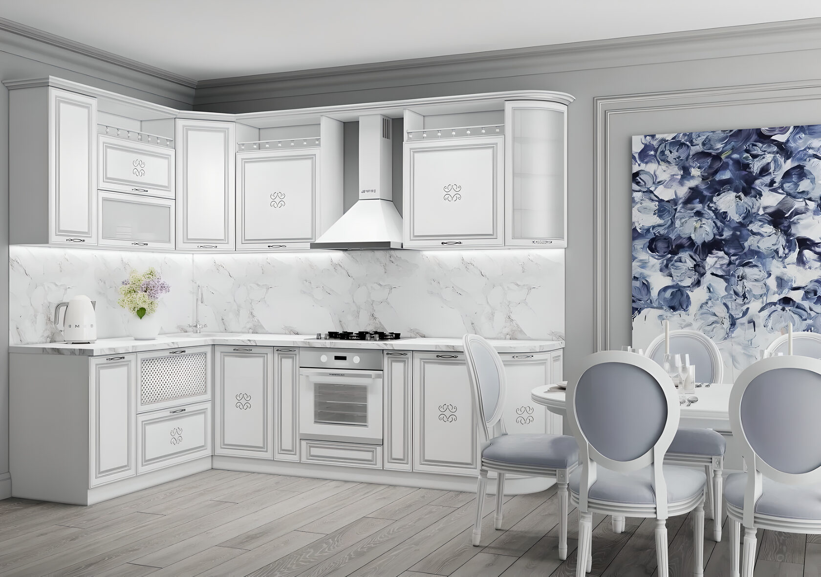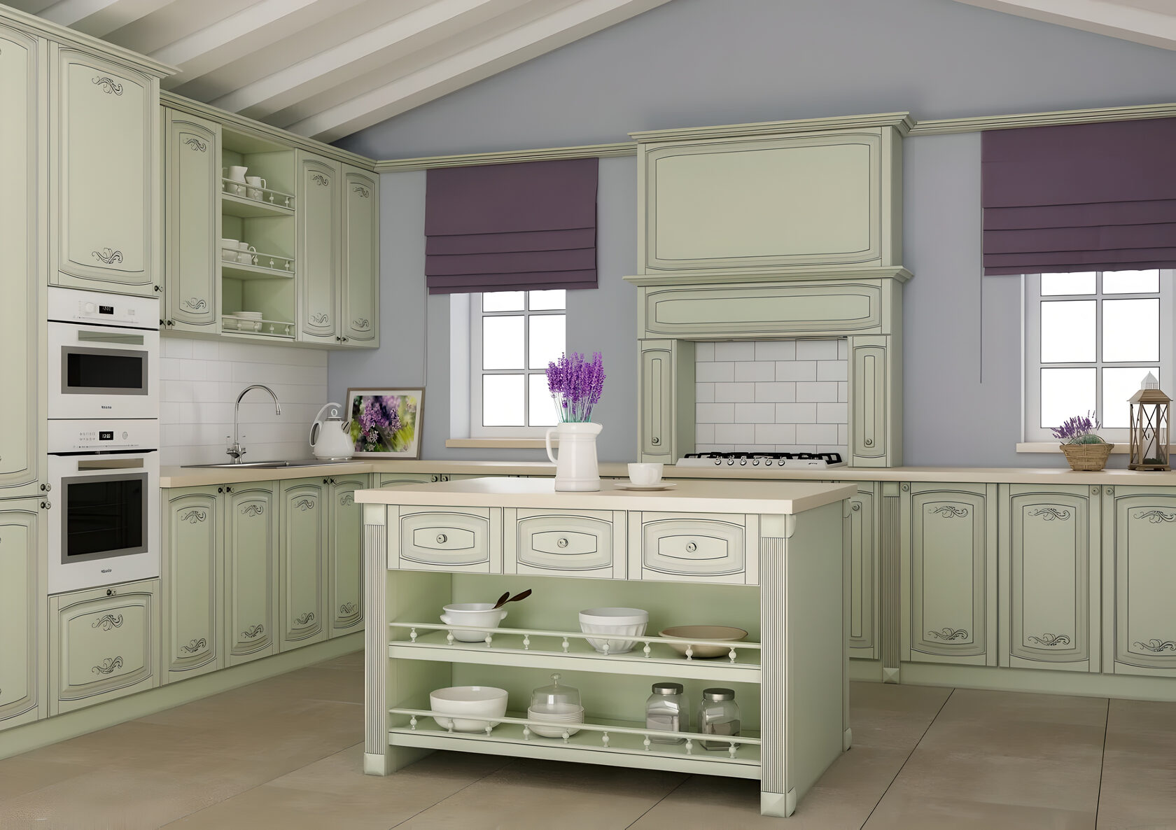 МАТЕРИАЛЫ Фасады: МДФ в эмали с патиной Выдвижные ящики: скрытые направляющие с доводчиками Китай Петли : с доводчиками Китай Столешница: Slotex, влагостойкая ДСП покрытая HPL пластиком, обратная сторона пластик, предотвращающий разбухание столешницы