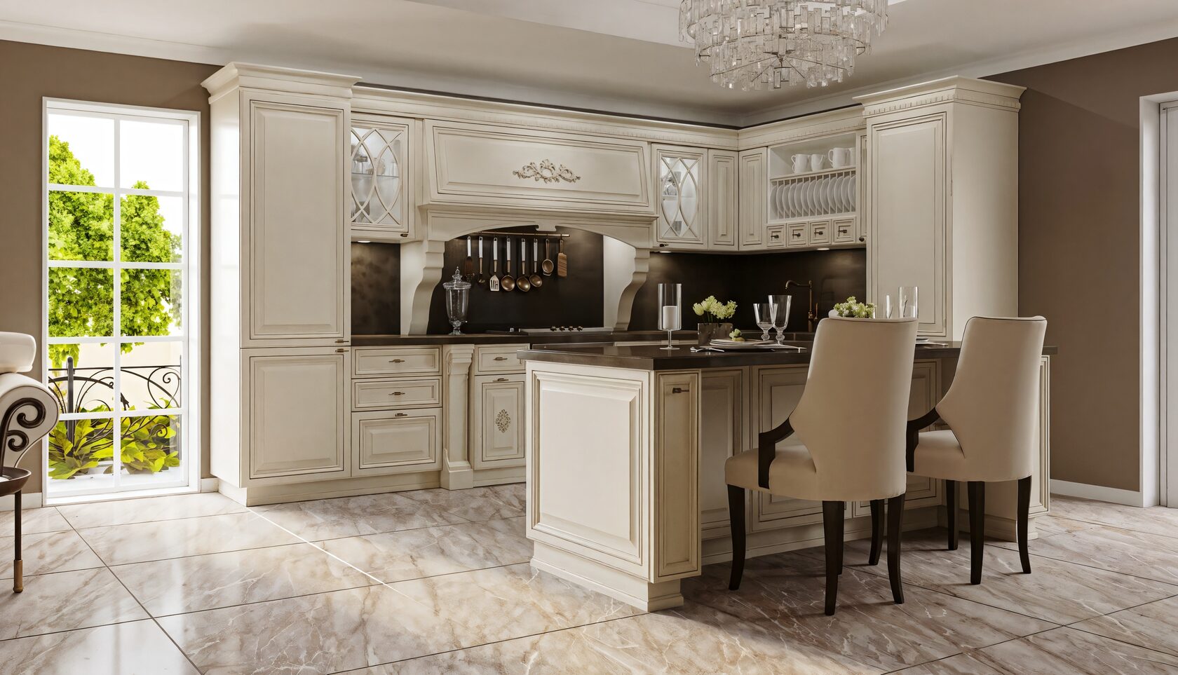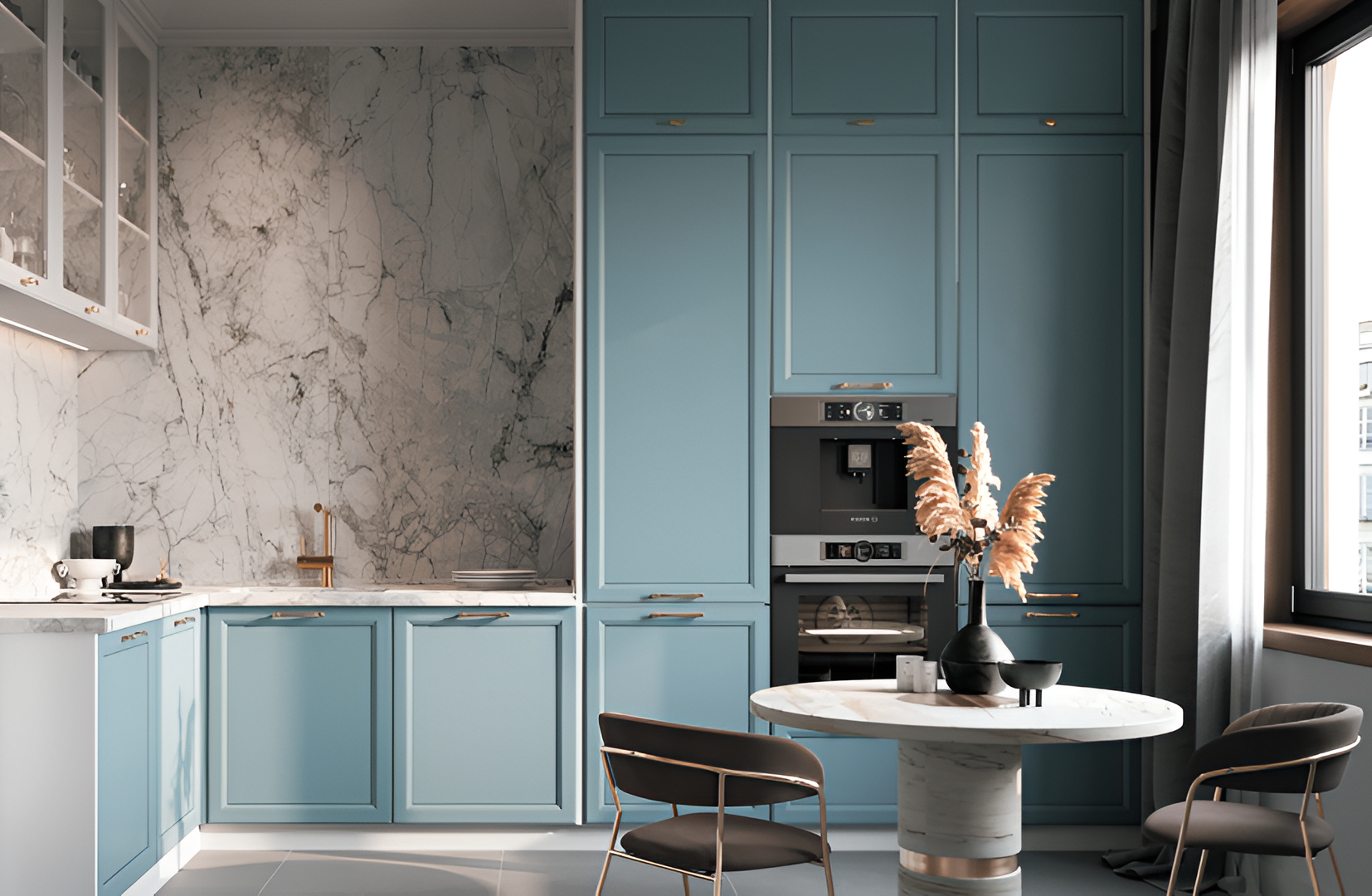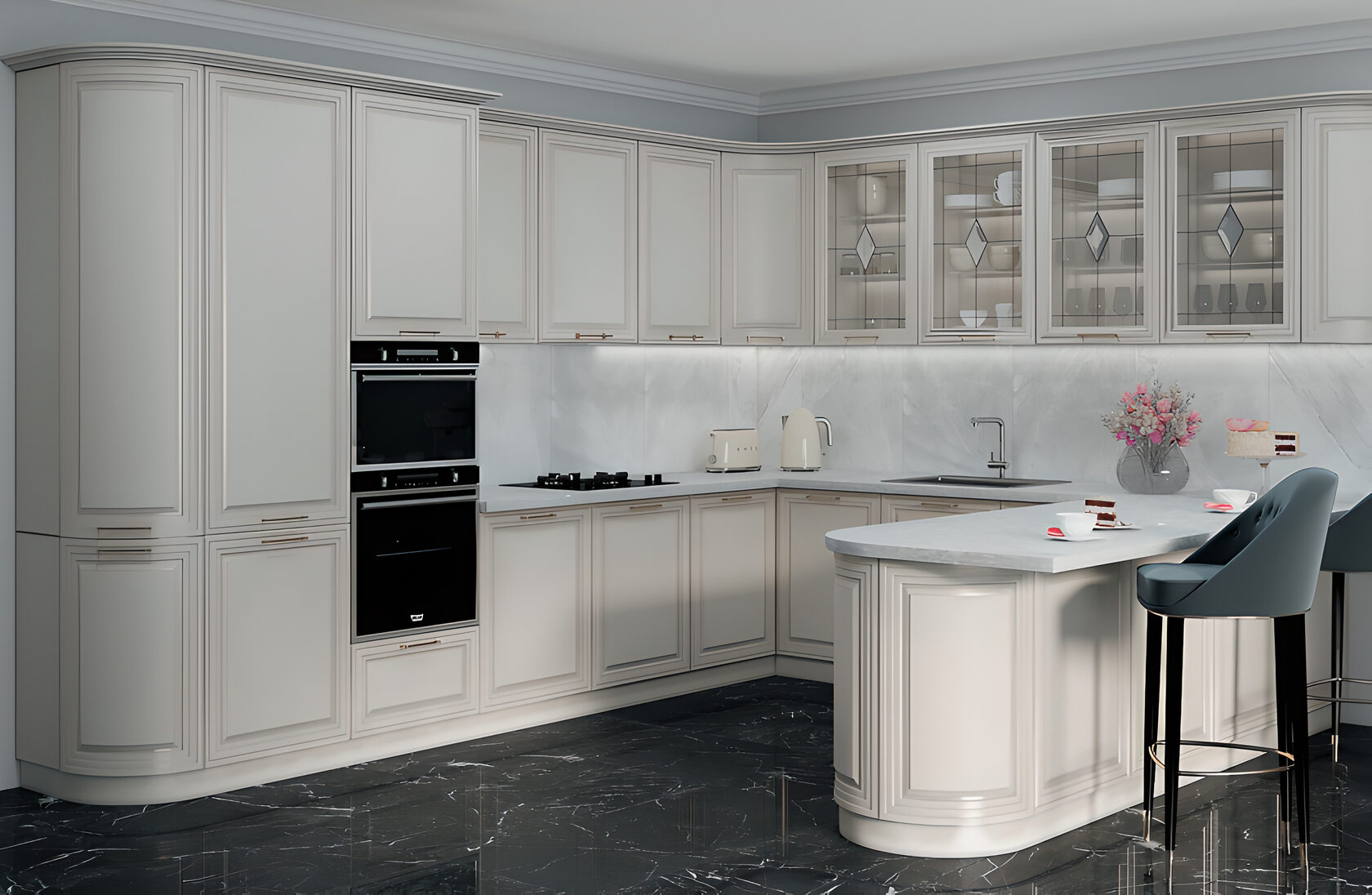МАТЕРИАЛЫ Фасады: МДФ в эмали с патиной Выдвижные ящики: скрытые направляющие с доводчиками Китай Петли : с доводчиками Китай Столешница: Slotex, влагостойкая ДСП покрытая HPL пластиком, обратная сторона пластик, предотвращающий разбухание столешницы