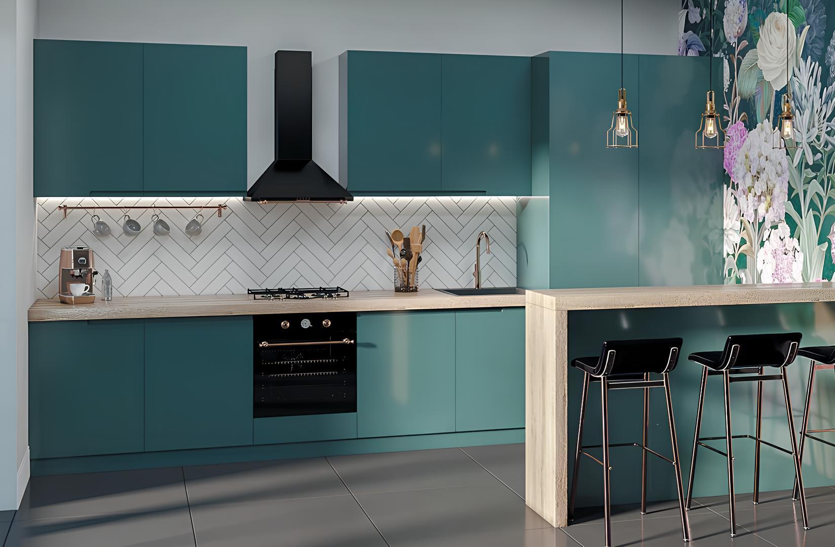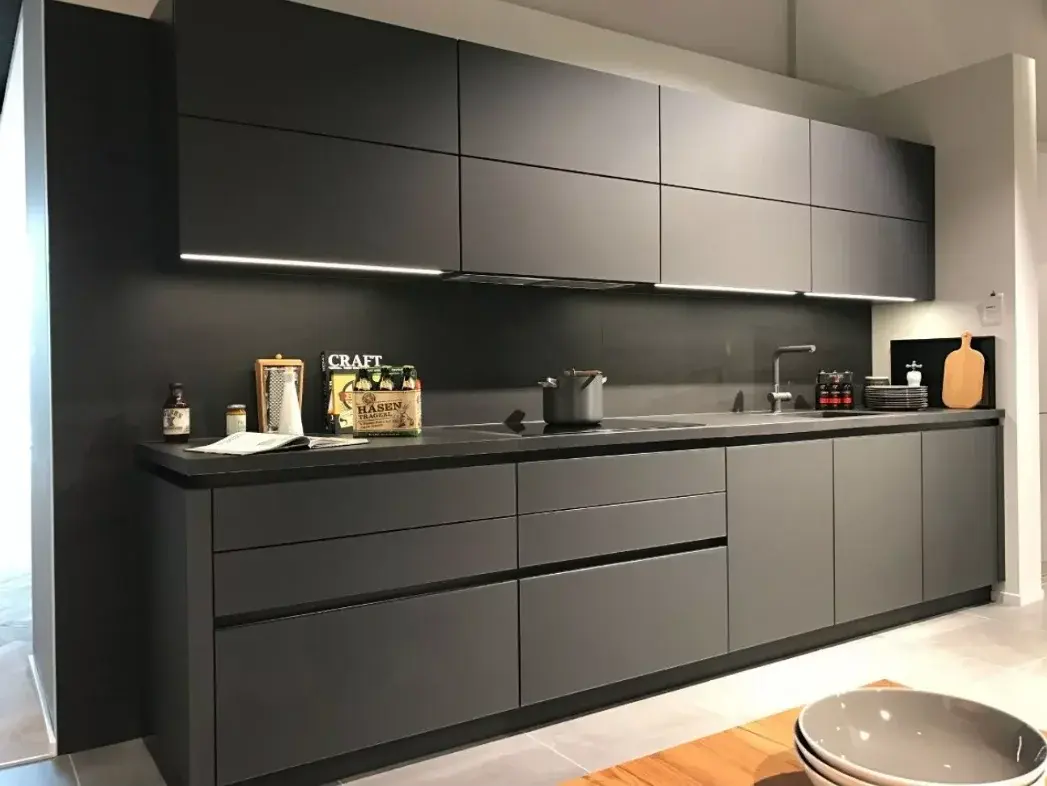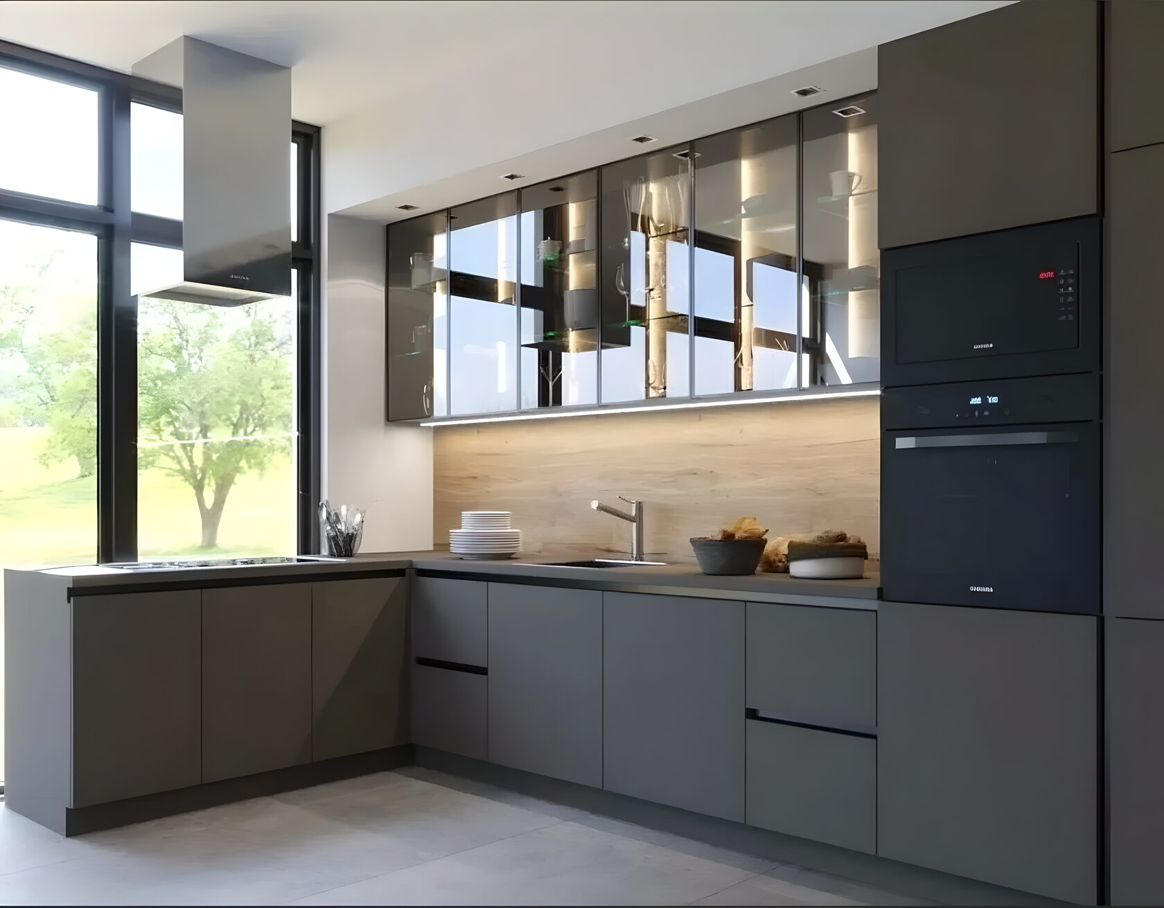 МАТЕРИАЛЫ Фасады: пластик AGT и ЛДСП Еггер более 200 различных цветов и фактур Выдвижные ящики: скрытые направляющие с доводчиками Петли : с доводчиками Корпус : с ручкой Гола Столешница: Slotex, влагостойкая ДСП покрытая HPL пластиком, обратная сторона пластик, предотвращающий разбухание столешницы