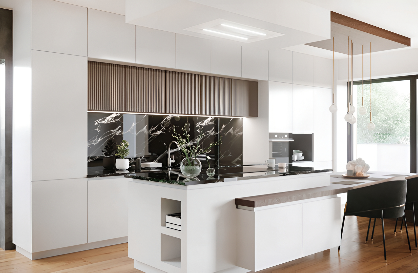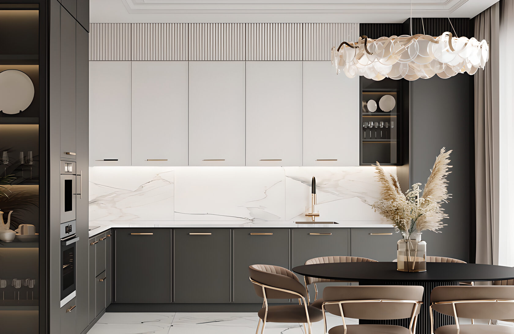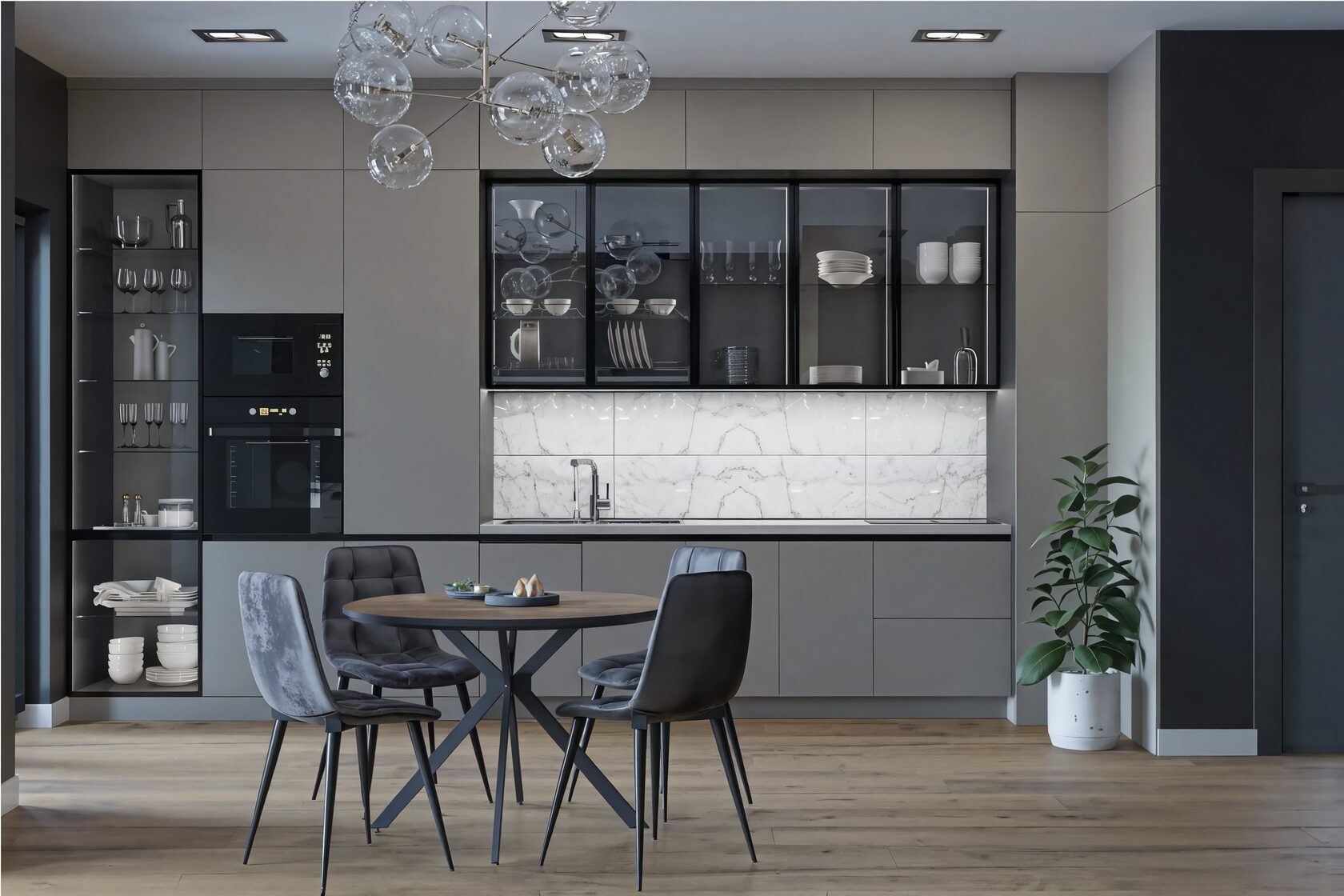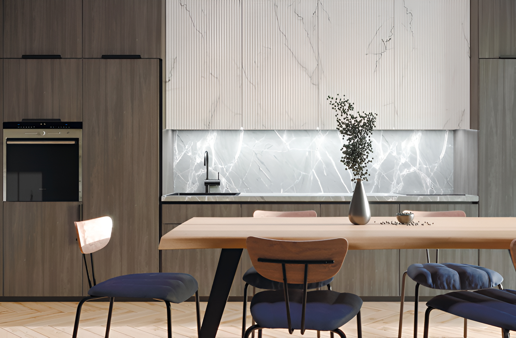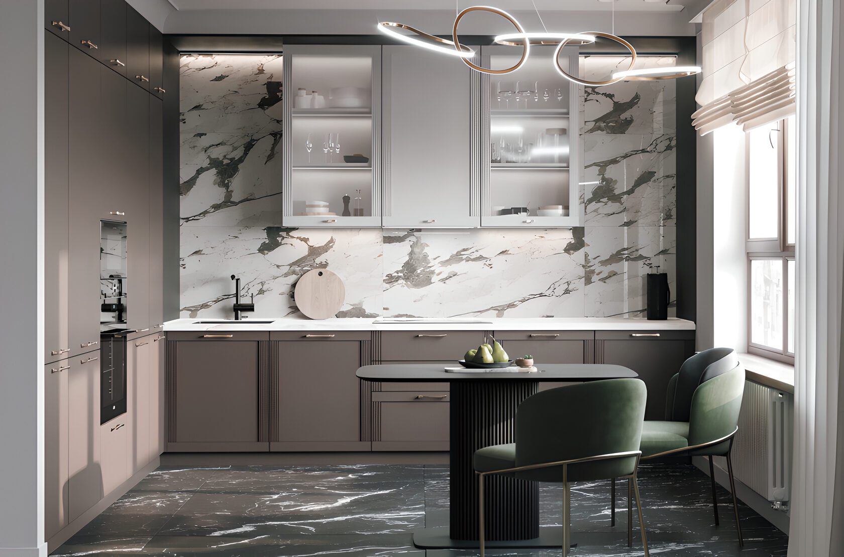 МАТЕРИАЛЫ Фасады: фасады Eterno Выдвижные ящики: скрытые направляющие с доводчиками Китай Петли : с доводчиками Китай Столешница: Slotex, влагостойкая ДСП покрытая HPL пластиком, обратная сторона пластик, предотвращающий разбухание столешницы