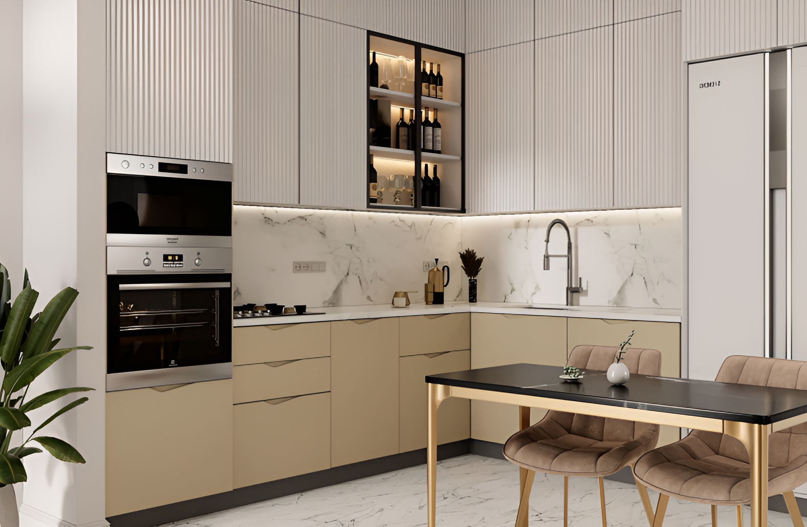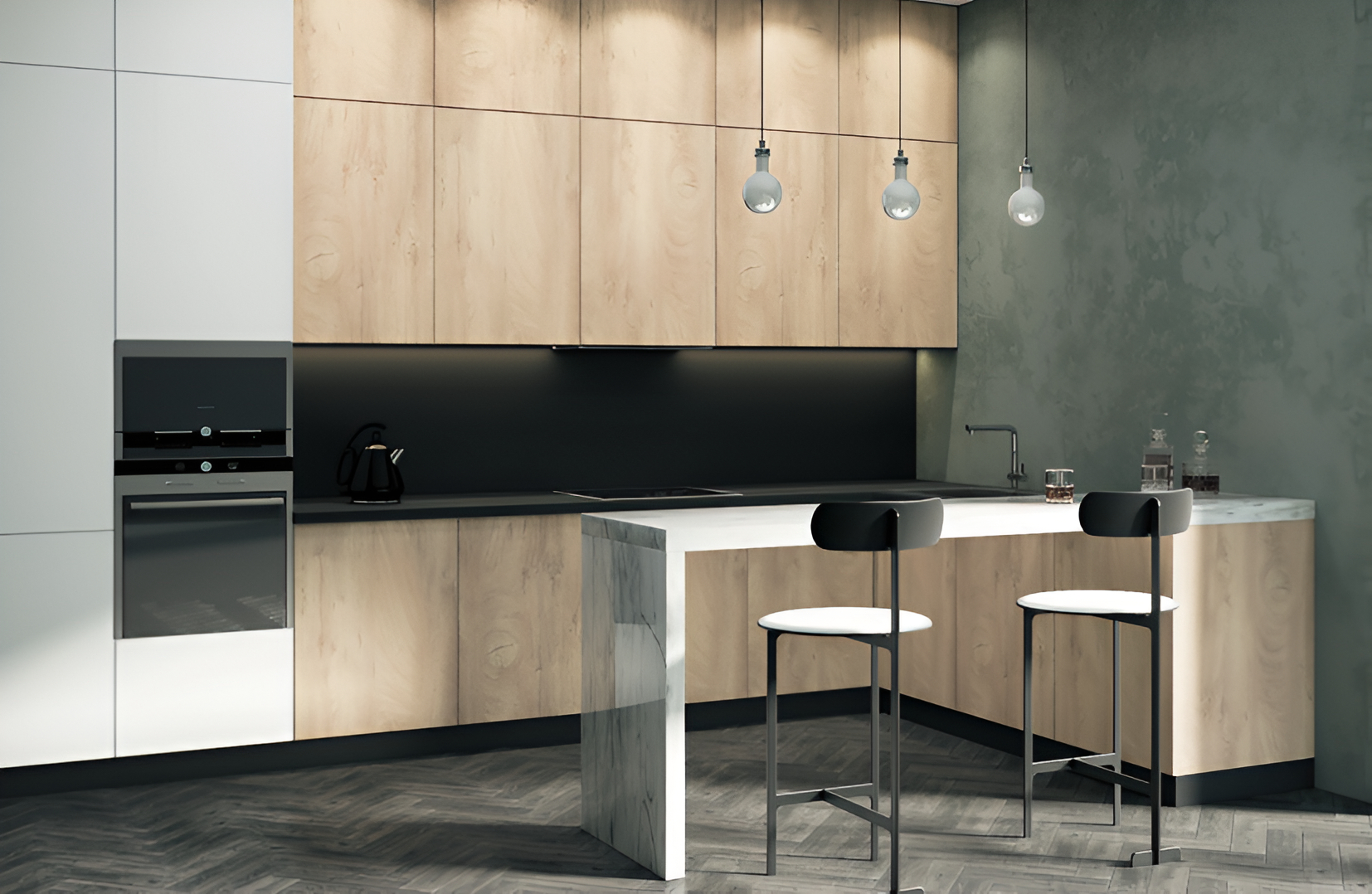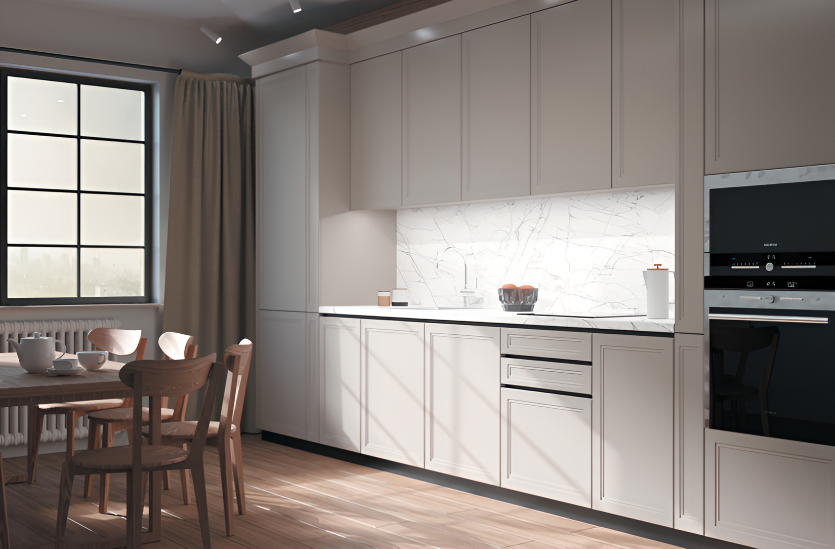МАТЕРИАЛЫ Фасады: фасады МДФ в пластике Cleaf Выдвижные ящики: скрытые направляющие с доводчиками Китай Петли : с доводчиками Китай Столешница: Slotex, влагостойкая ДСП покрытая HPL пластиком, обратная сторона пластик, предотвращающий разбухание столешницы