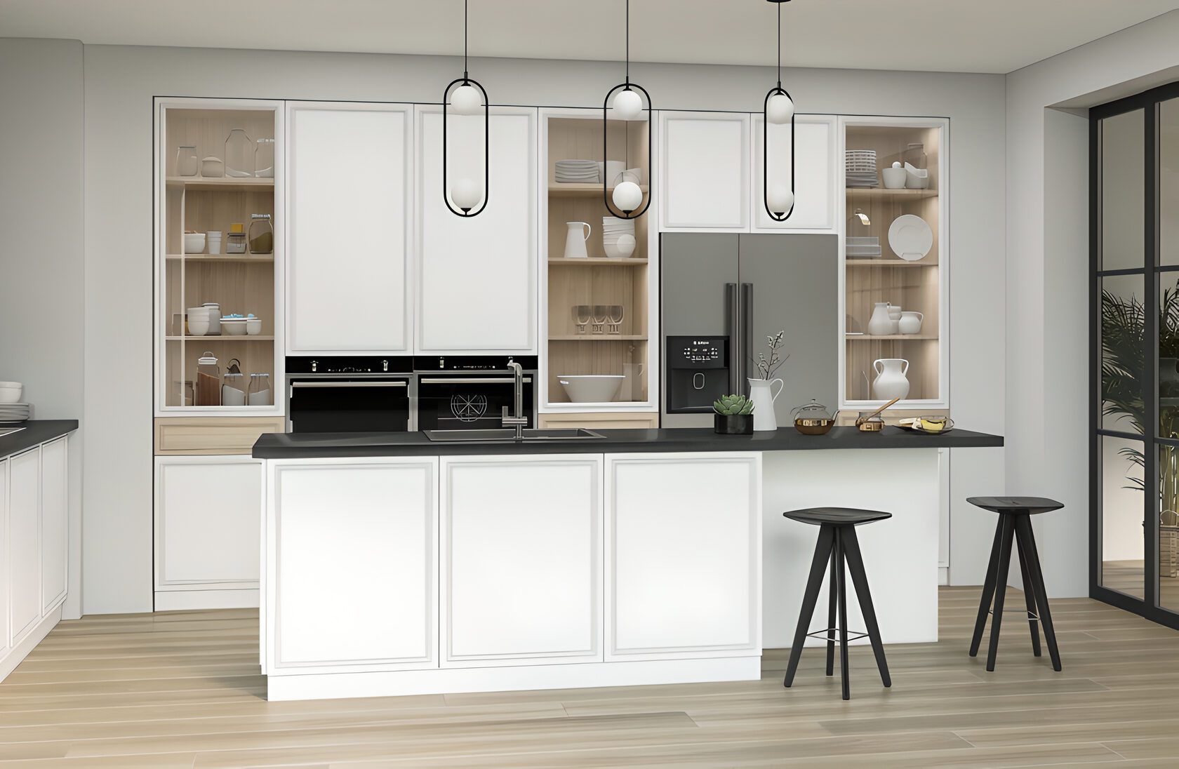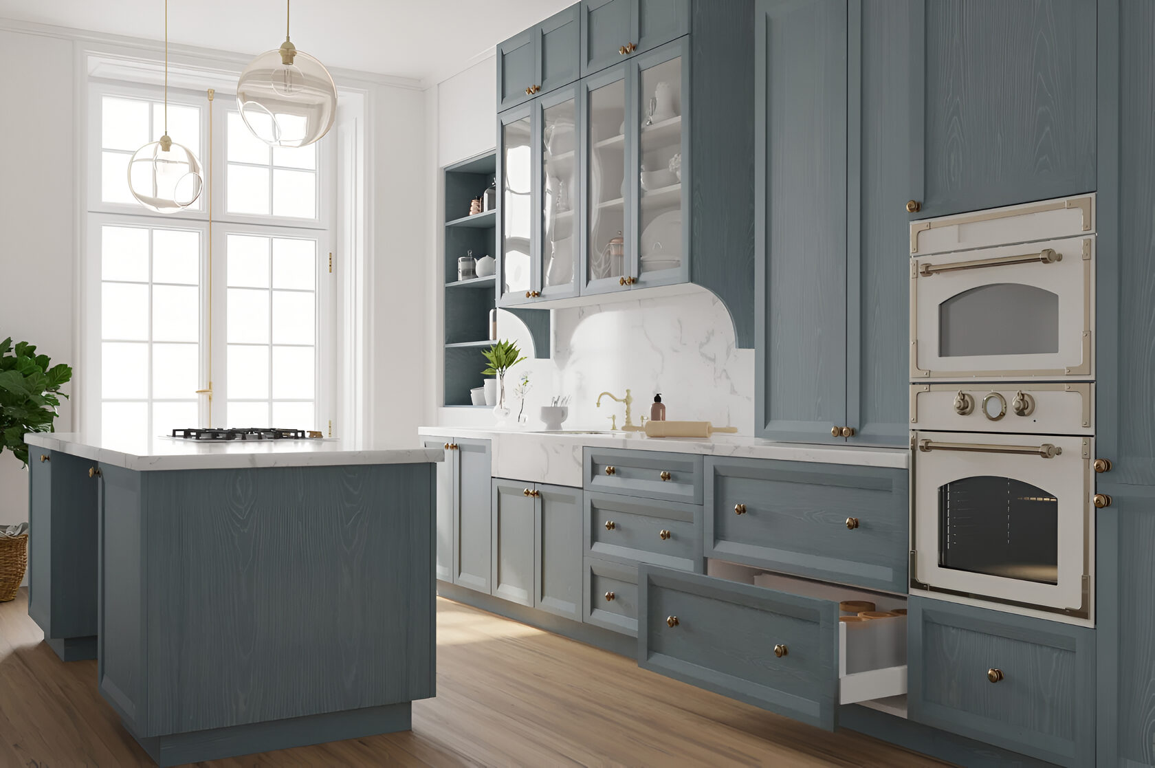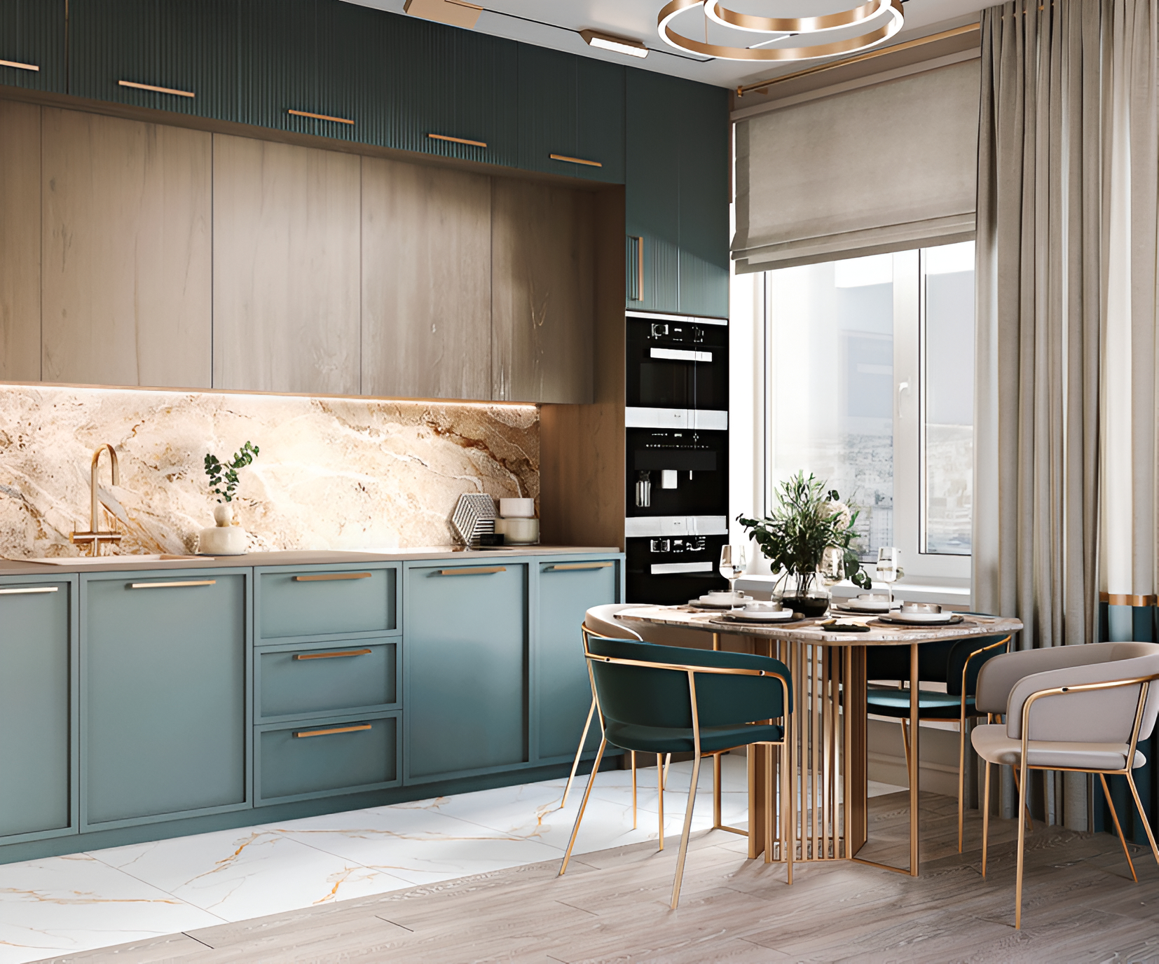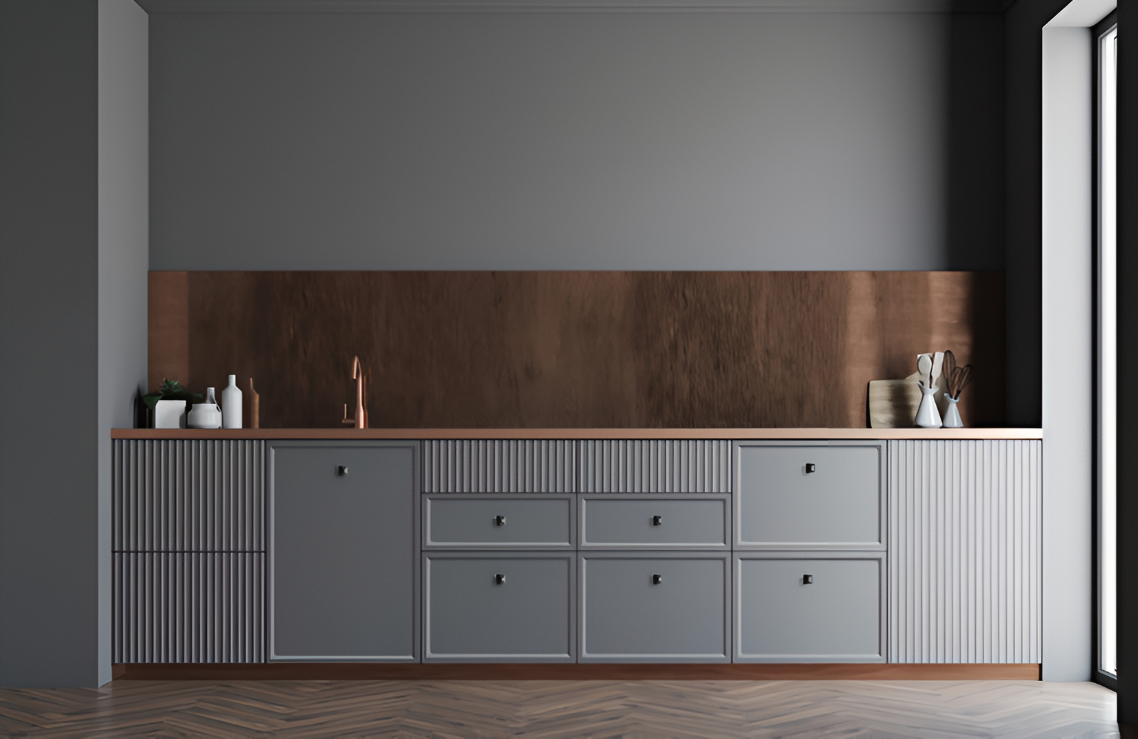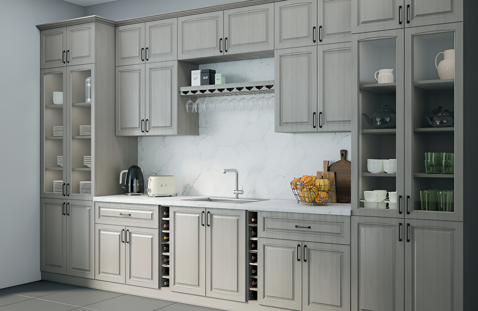 МАТЕРИАЛЫ Фасады: МДФ в пленке с патиной Выдвижные ящики: скрытые направляющие с доводчиками Китай Петли : с доводчиками Китай Столешница: Slotex, влагостойкая ДСП покрытая HPL пластиком, обратная сторона пластик, предотвращающий разбухание столешницы